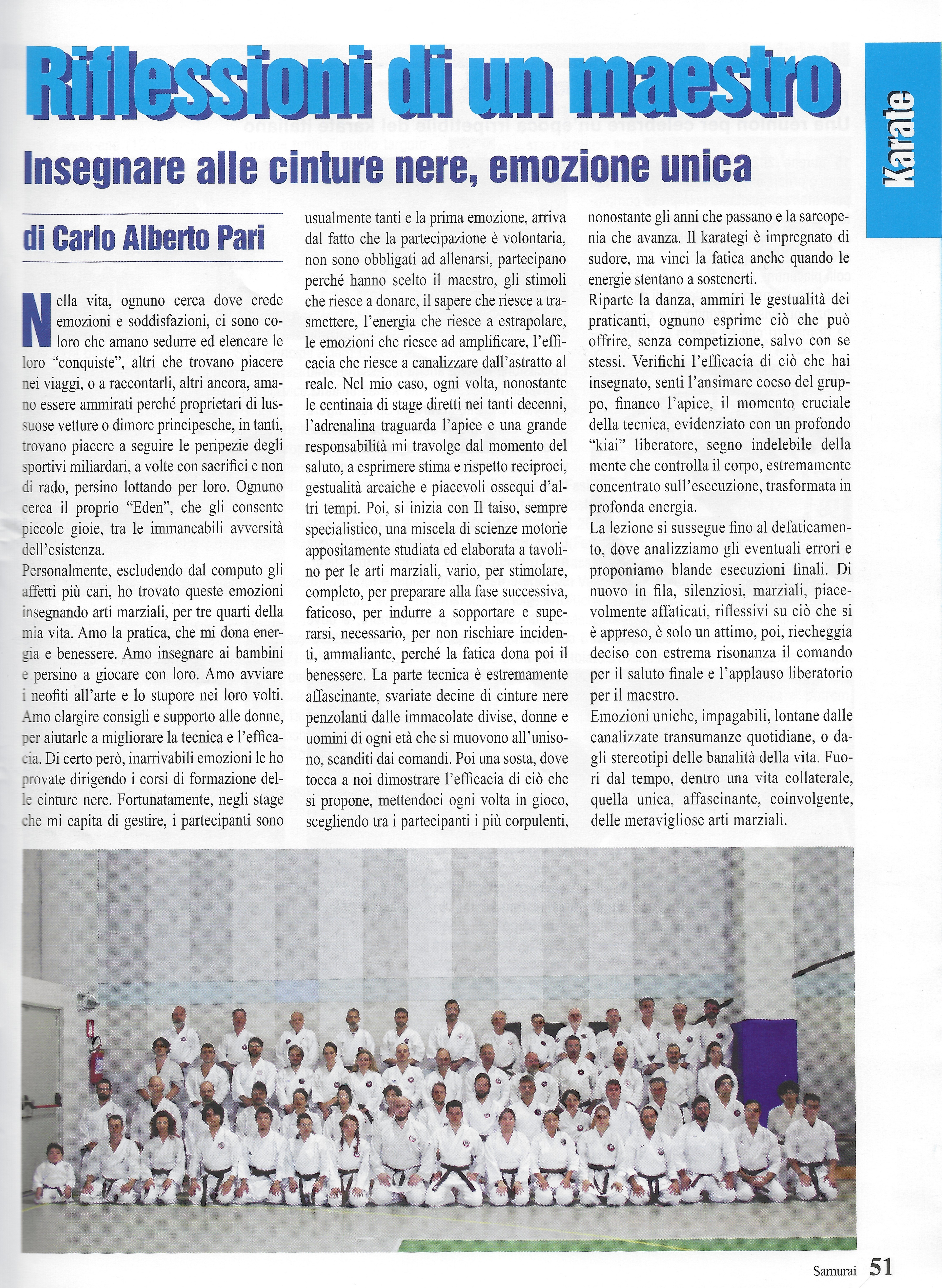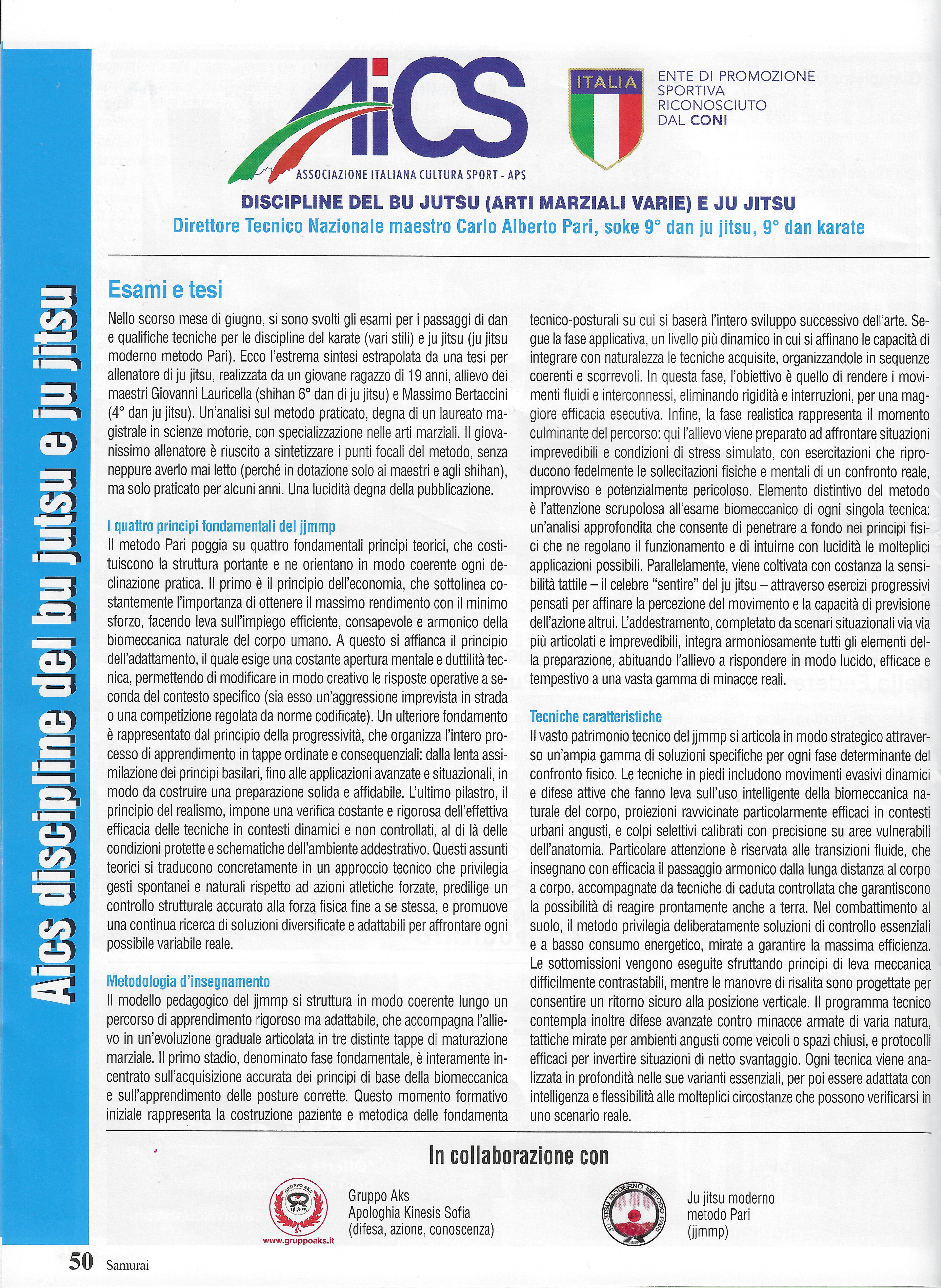 Il recente articolo, scritto dal direttore della più importante rivista nazionale delle Arti Marziali Italiane: SAMURAI descrive il nostro corso di formazione, non servono commenti, è assolutamente veritiero ed esplicativo